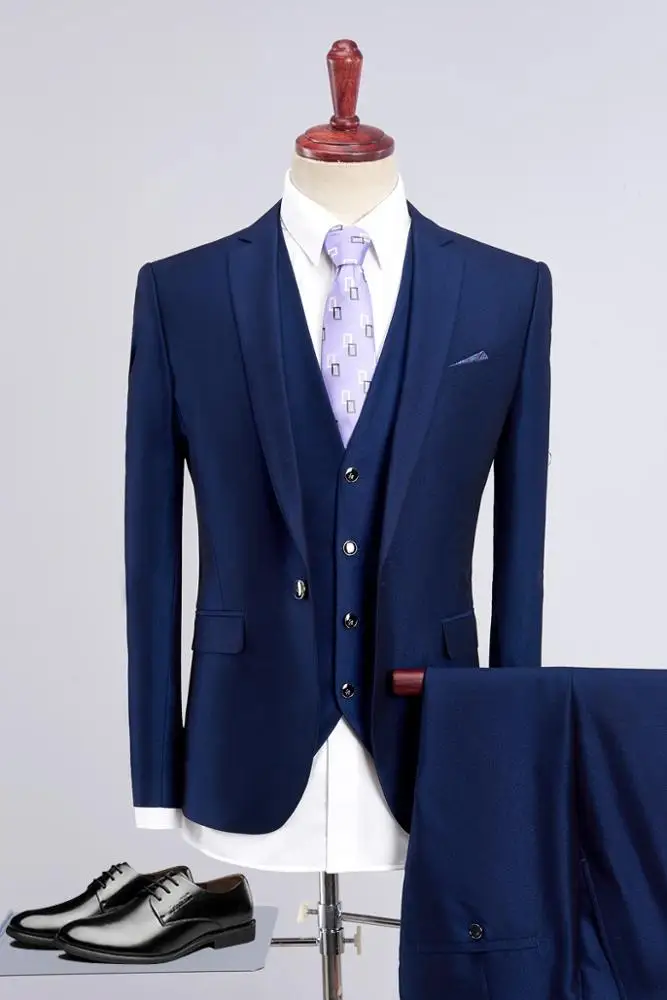Oem Manufacturers New Design Coat Pant Men Three Piece Royal Blue Suit